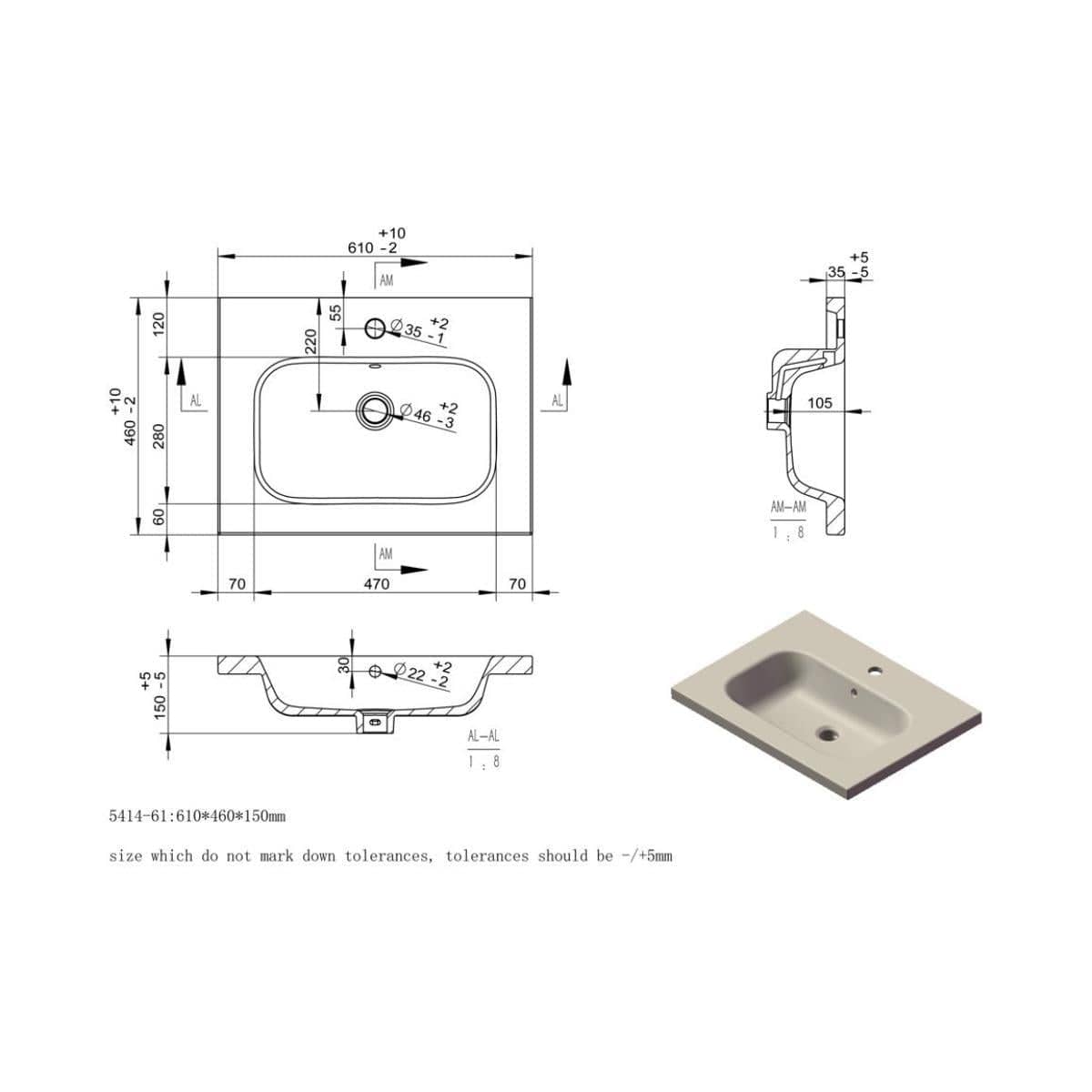 - 1 tap hole ceramic basin, or