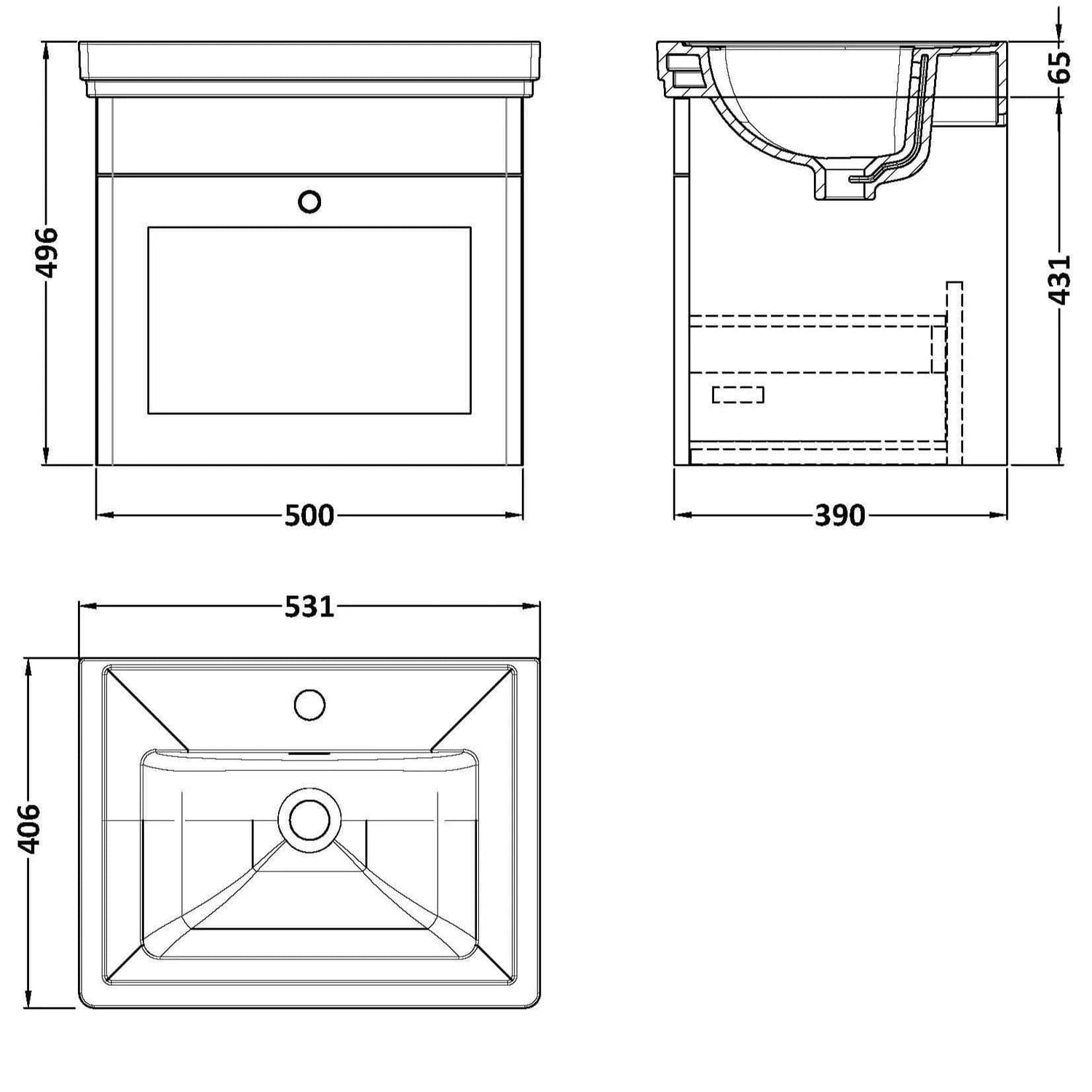- 500mm wall mounted vanity unit – ideal for smaller bathrooms or cloakrooms