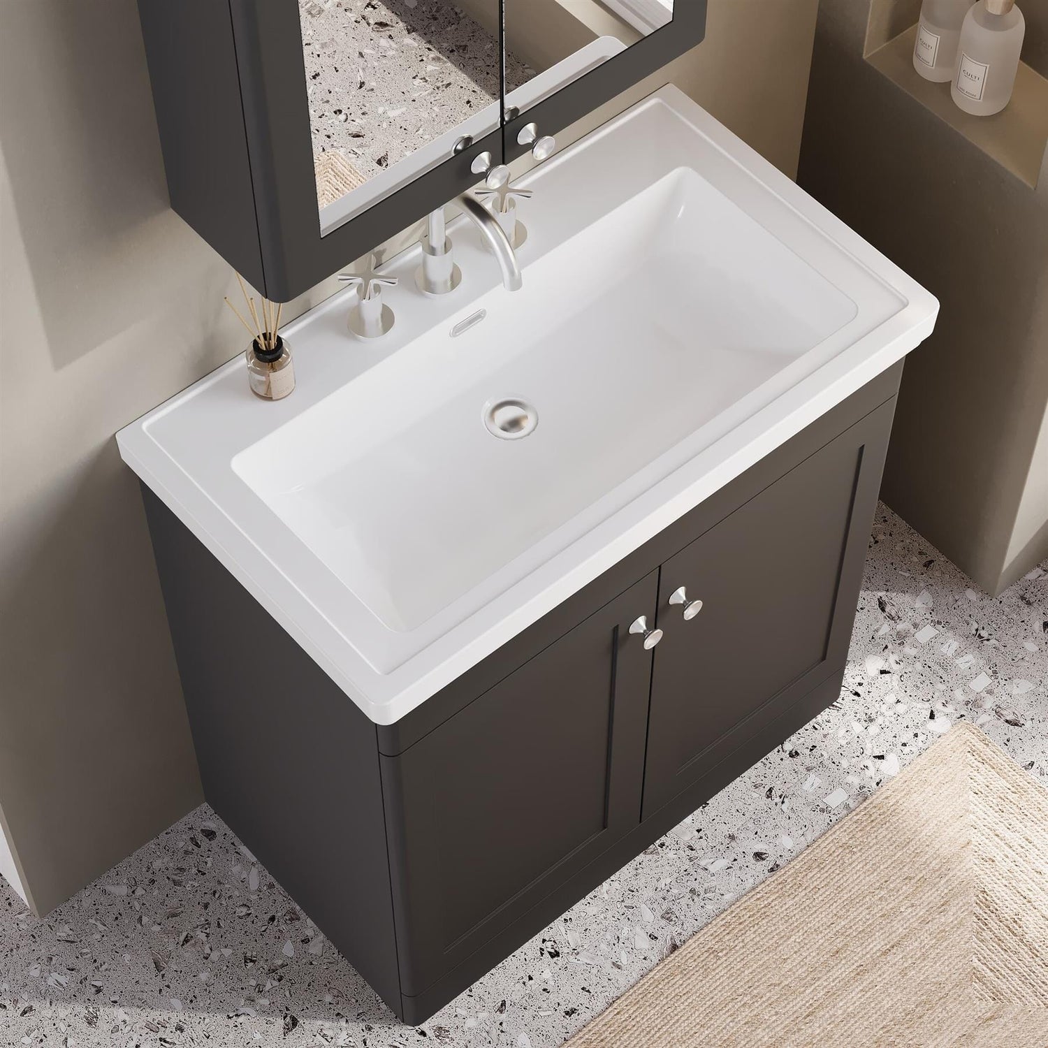 - Part of the Leighton collection, traditional vanity units inspired by English stately homes